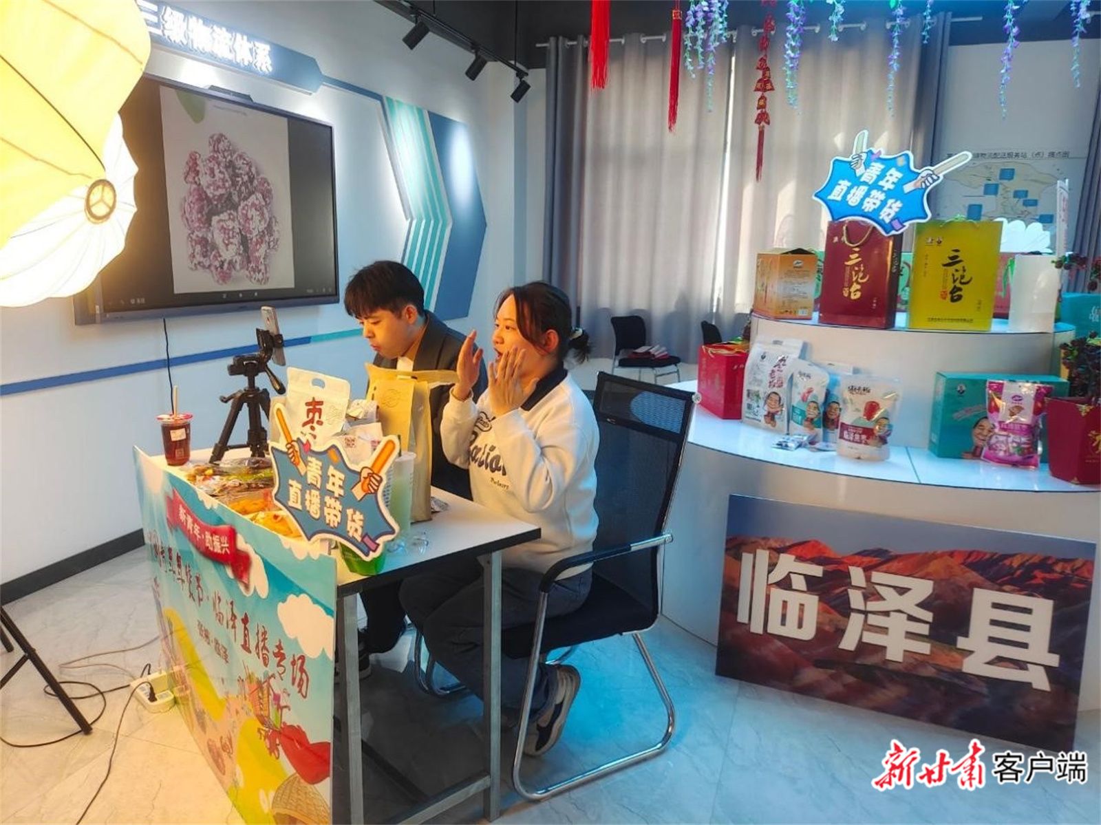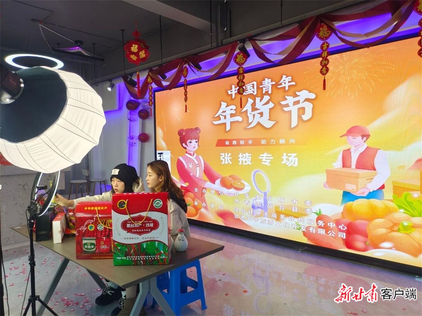 “青春联手·助力振兴”第三届中国青年年货节张掖专场直播带货活动现场