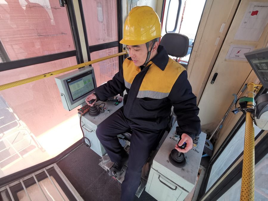 春运开始后,货场装卸的物资越来越多,最多的时候一天要装运80组集装箱,其中运往河北、柳州和衡阳等地区的牛奶集装箱达20箱左右。15米的高空上下一次要花费5分钟时间,为了能够保证装卸质量和效率,减少不必要的上下,刘佳林在空中基本不喝水,一天下来嘴唇干得都起皮了,“虽然有点累,但看着一箱箱的年货从我手中发往各地,心里是高兴的。”刚从龙门吊上下来的刘佳林拿起水杯大口大口地喝了起来。