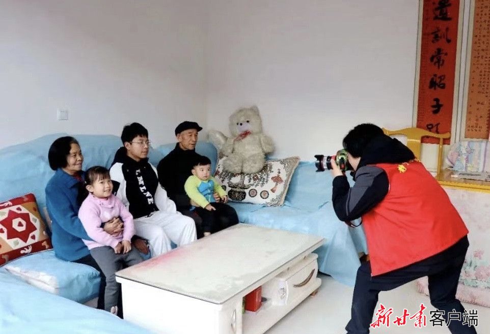 “左边是爷爷,我在奶奶怀里笑得最好看……”1月16日,在平凉市静宁县威戎镇杨湾村,新时代文明实践站的志愿者将拍摄的全家福冲洗出来后送给被拍照的村民,小女孩杨嘉怡看着照片美滋滋地说。