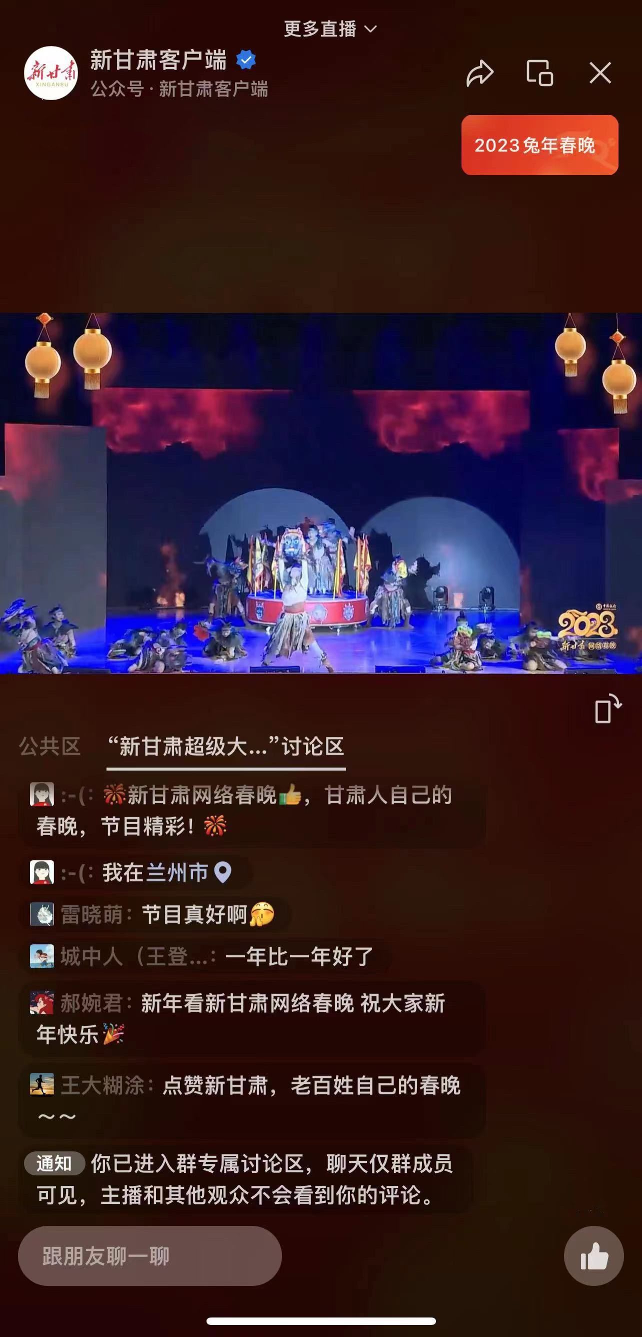 “再一次看新甘肃网络春晚,依旧很精彩。”陇南市民张翔说,“连续两年除夕当天都有新甘肃网络春晚陪伴,每年的节目都看点十足,具有浓厚的陇原特色。”在他看来,网络春晚初心始终未变,通过不断创新,致力于群众文化交流展示的同时,更让植根于群众中的优秀文化服务于群众、回馈于群众。