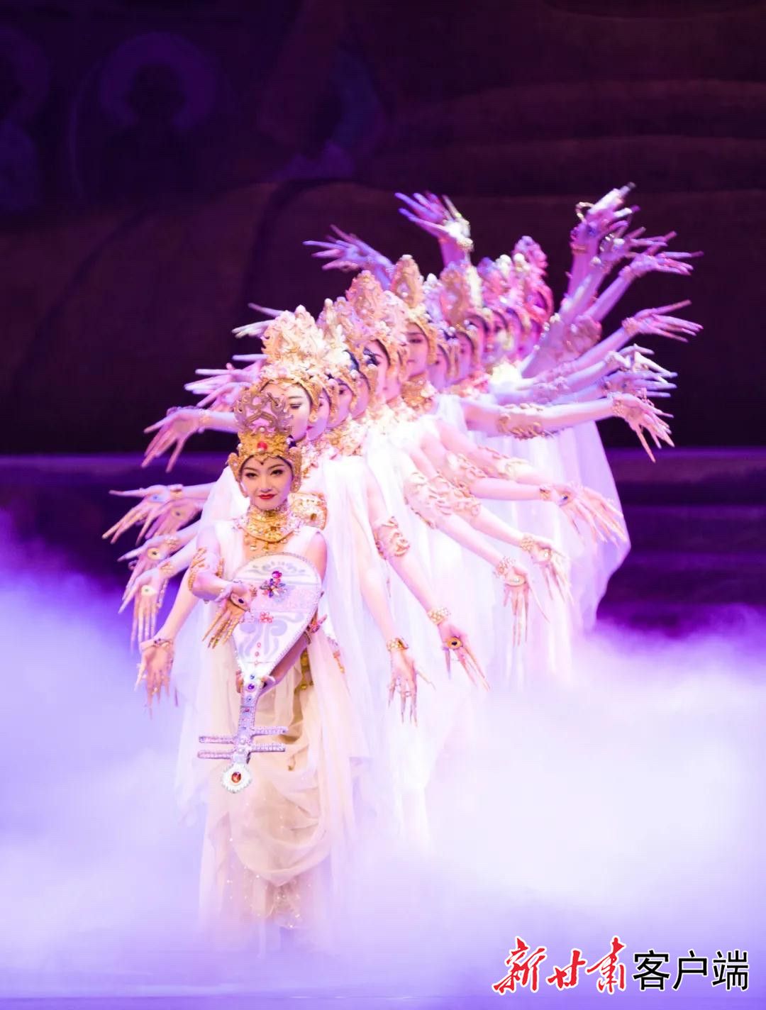 演出期间,舞台上气势恢宏的“千手观音”,婀娜多姿的“波斯舞”,风情万种的“反弹琵琶”,绚丽夺目的“敦煌壁画”……让台下观众如痴如醉;