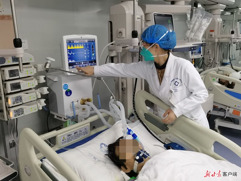 省第二人民医院呼吸与危重症医学科主治医师张洁时刻监测患者生命体征。