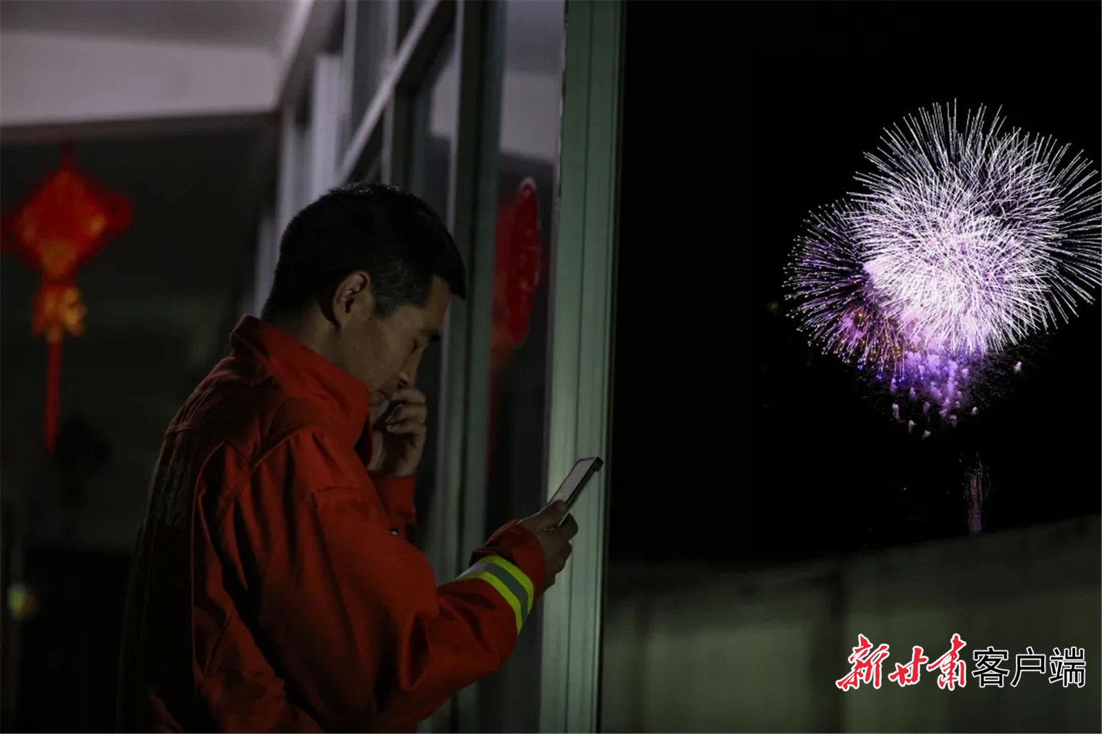 夜色渐晚,甘肃省森林消防总队在陕西黄陵驻防队伍的营区里,一个个大红灯笼高高挂起、一面面彩旗迎风飘扬、一副副春联火红鲜艳,整个营区神奇地拼凑出了驻防队伍浓浓的“年味”。