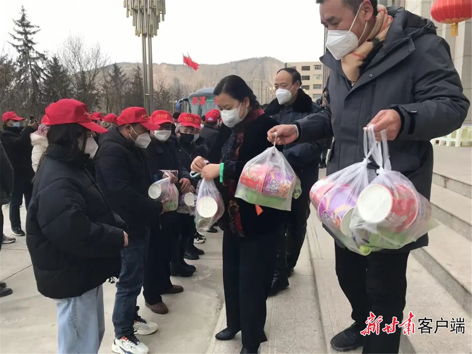 为务工群众发送食物。