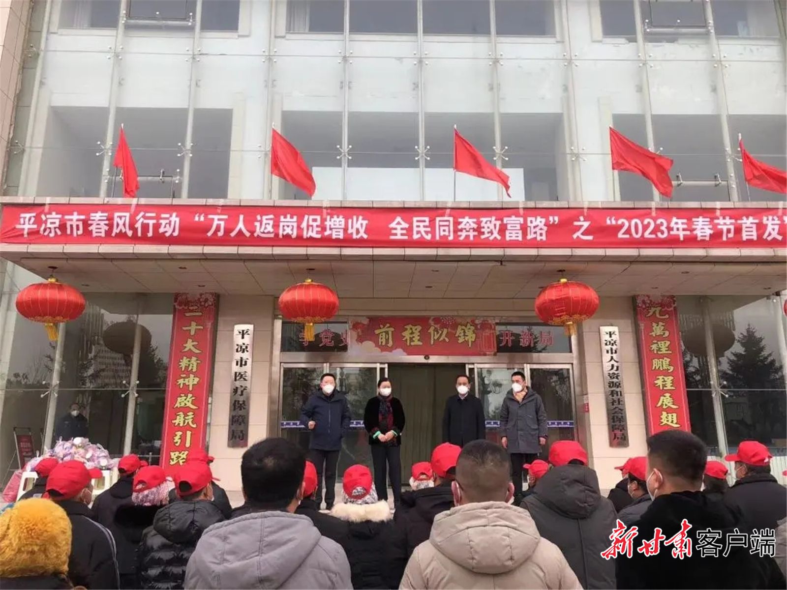 1月23日,大年初二,由平凉市人社局安排部署的 “春风送真情,援助暖民心”暨“万人返岗促增收,全民同奔致富路”系列活动之一“2023年春节首发组织输转活动”举办。活动当天平凉市共有128名务工群众踏上返岗务工路。