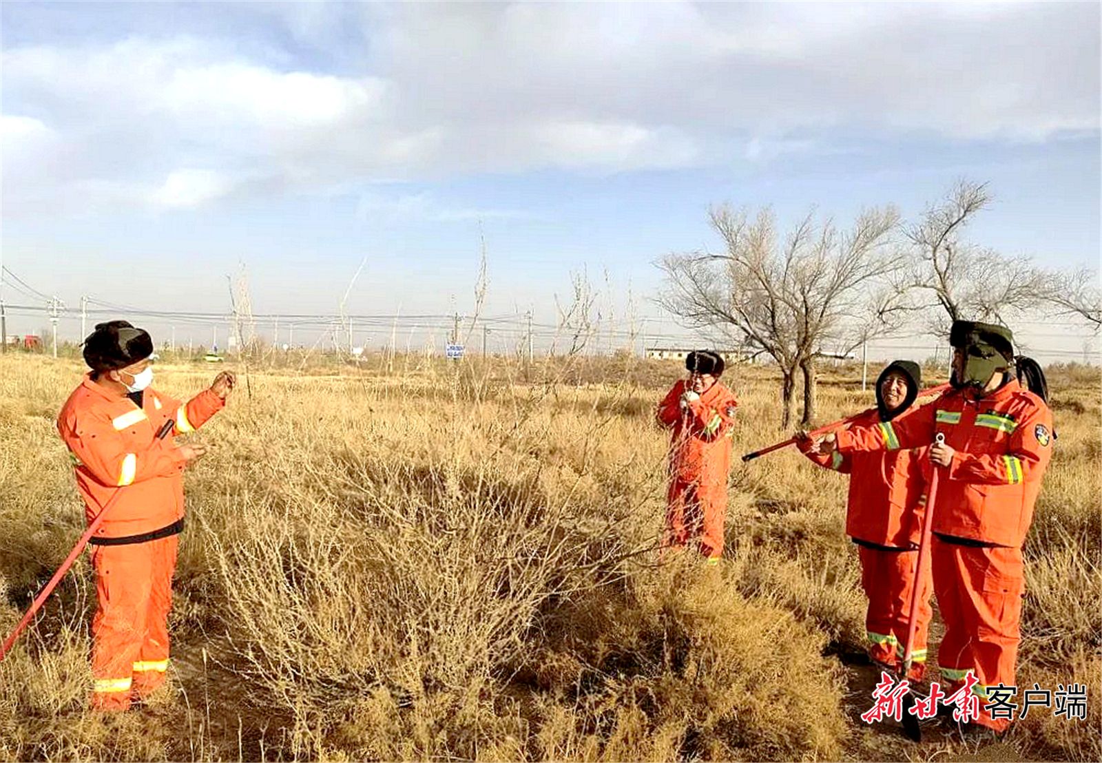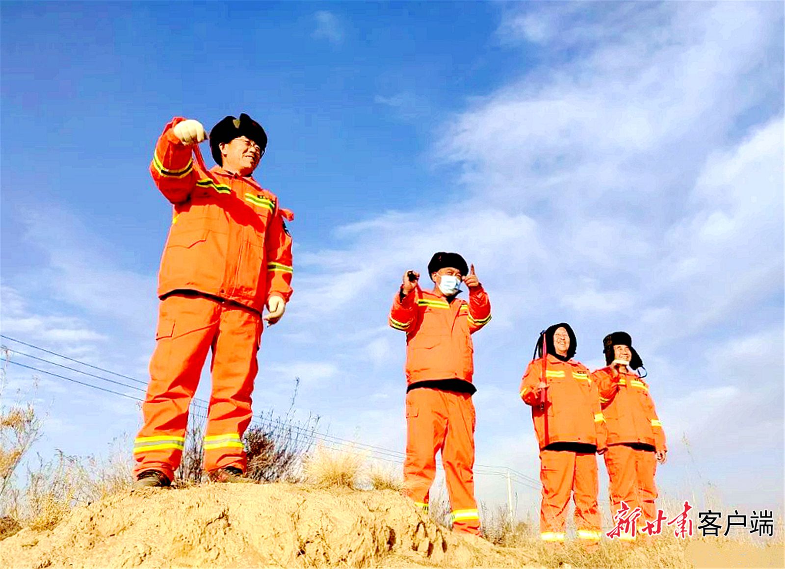 1月21日,大年三十,是古浪县八步沙林场值班巡林的日子,林场第二代治沙人石银山、贺中强、罗兴全、王志鹏等人和家人吃了团圆饭后,匆匆赶到林场,穿上工作服,拿上铁锹和灭火工具赶往眼窝子沙治沙点,开始了一天的巡林防火工作。