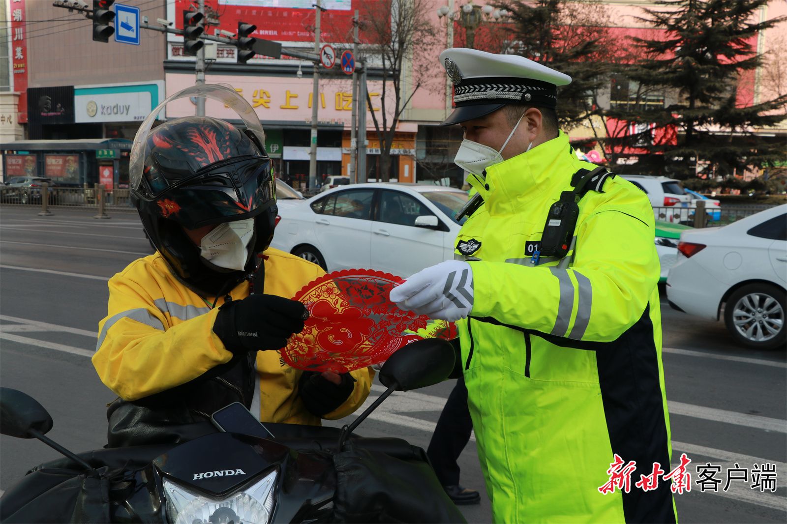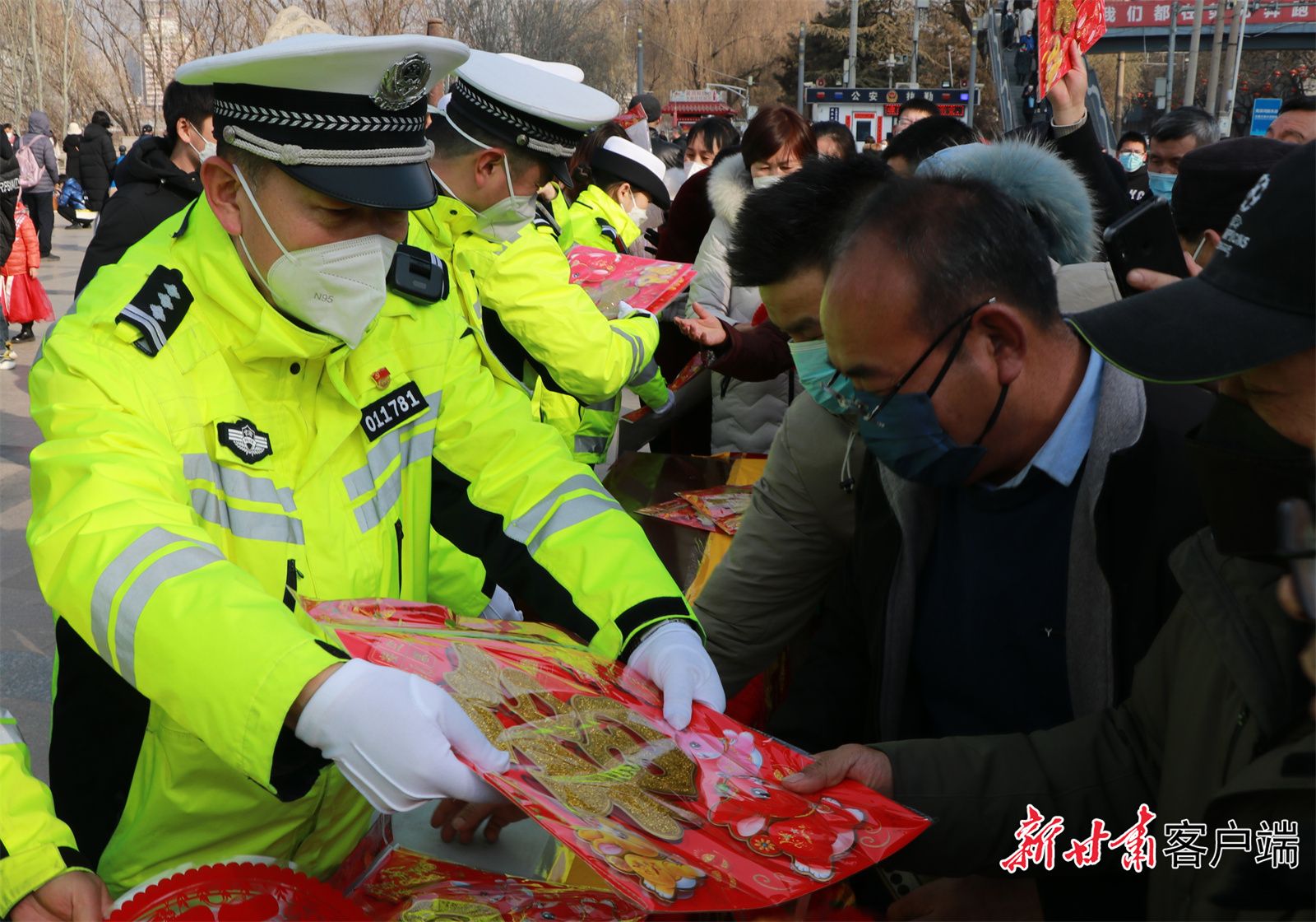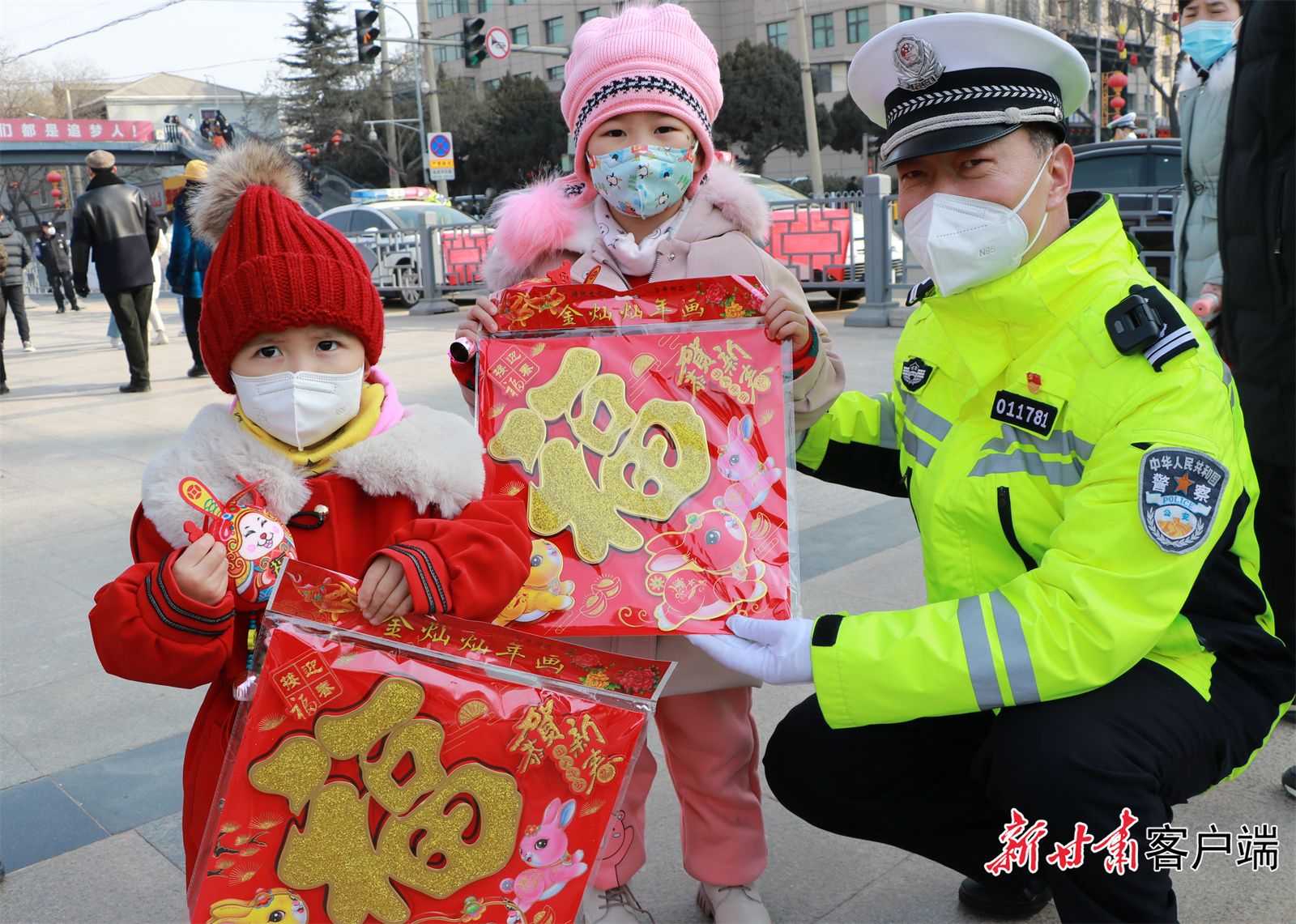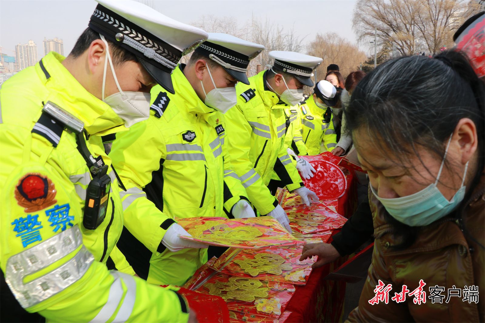 1月22日,农历大年初一,兰州市公安局交警支队城关大队在辖区中山桥广场、南关十字举行“送福送安全”贺新年主题交通安全宣传活动,为广大群众送上象征平安、幸福的“福”字和新年小礼品,祝愿大家“顺顺利利出门,平平安安回家”,让安全成为最大的幸福。