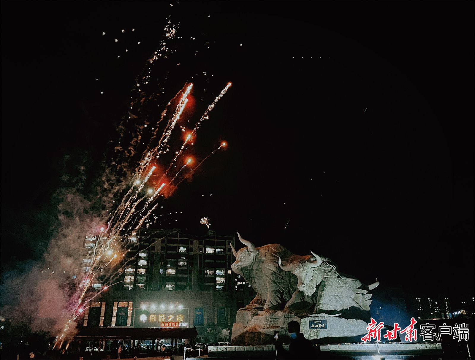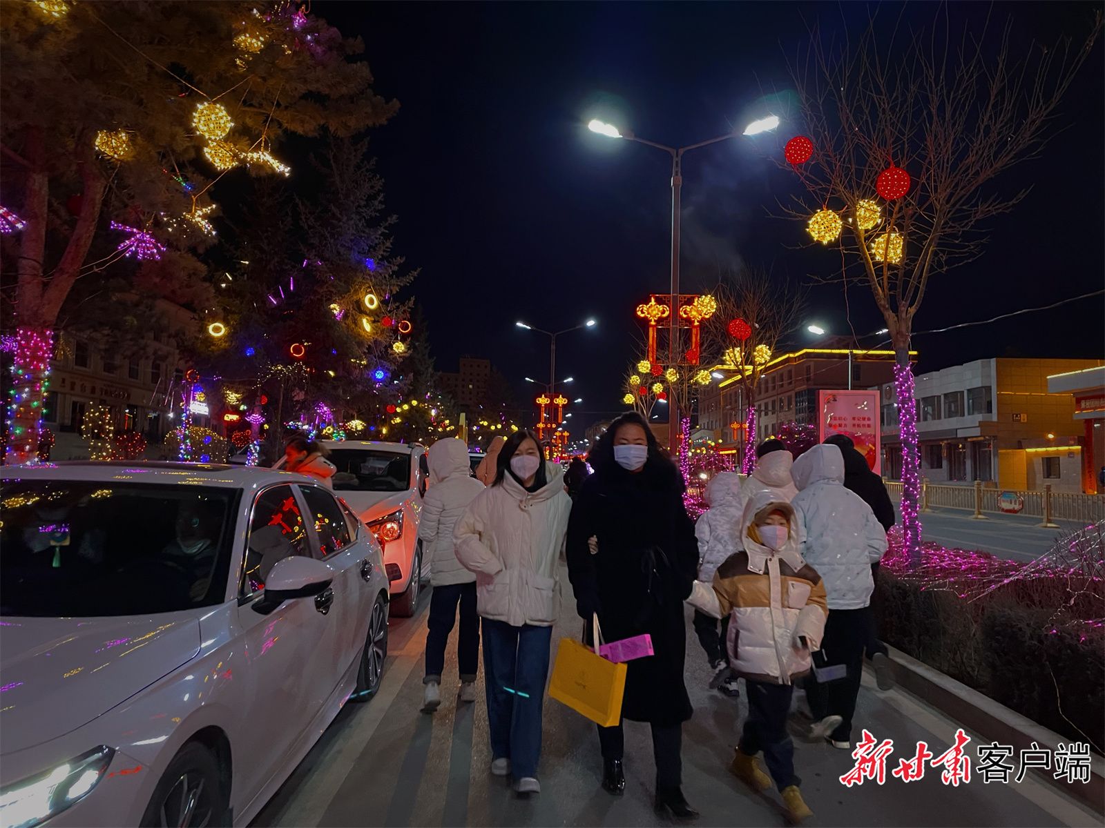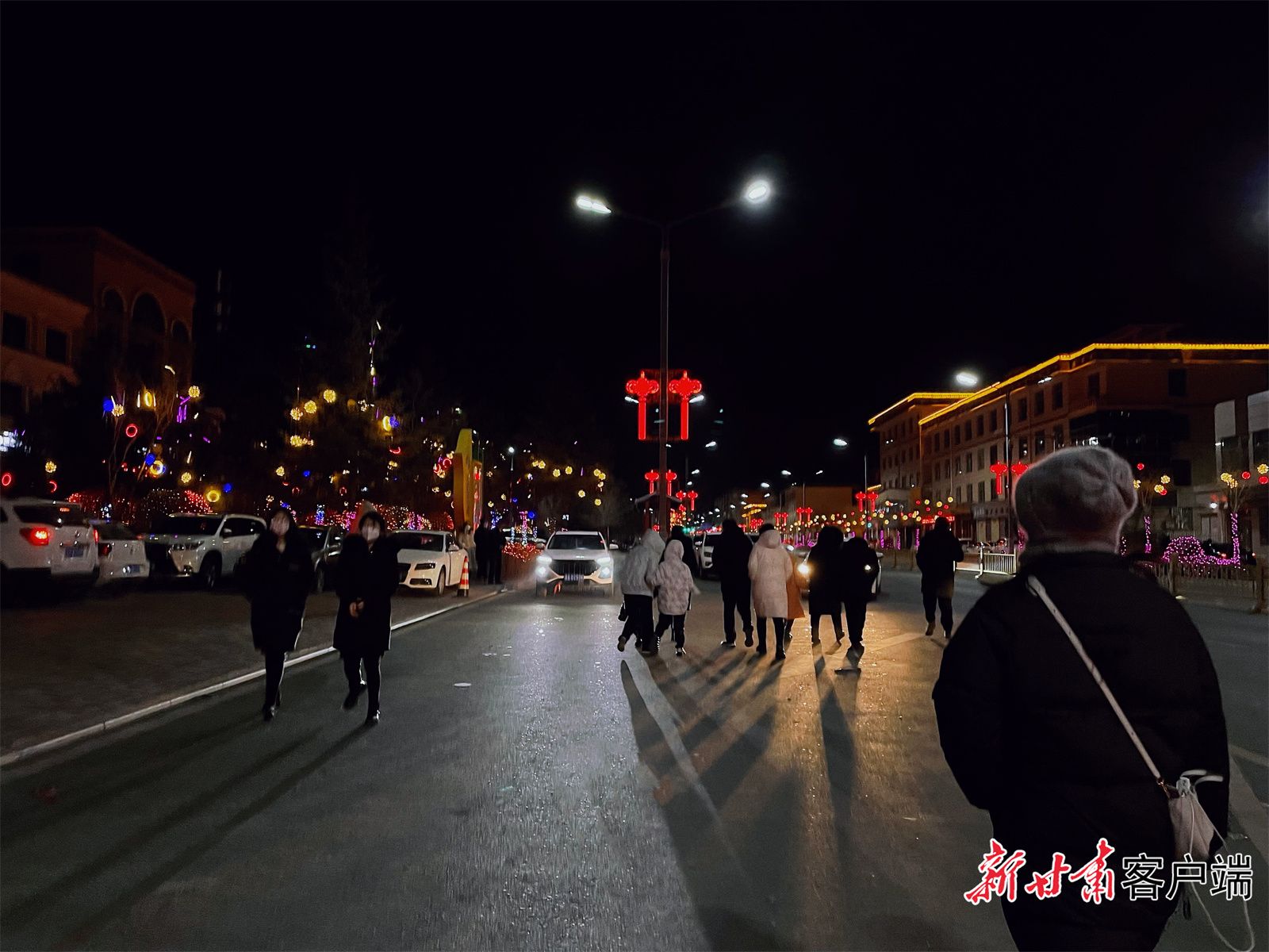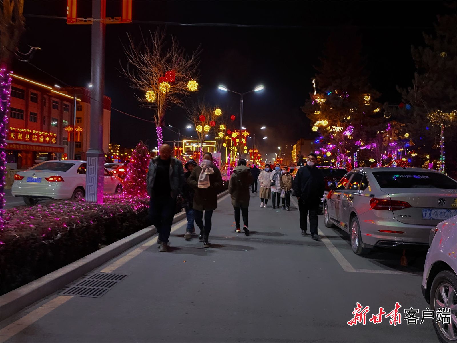 天祝县城街头灯火璀璨,年味十足。