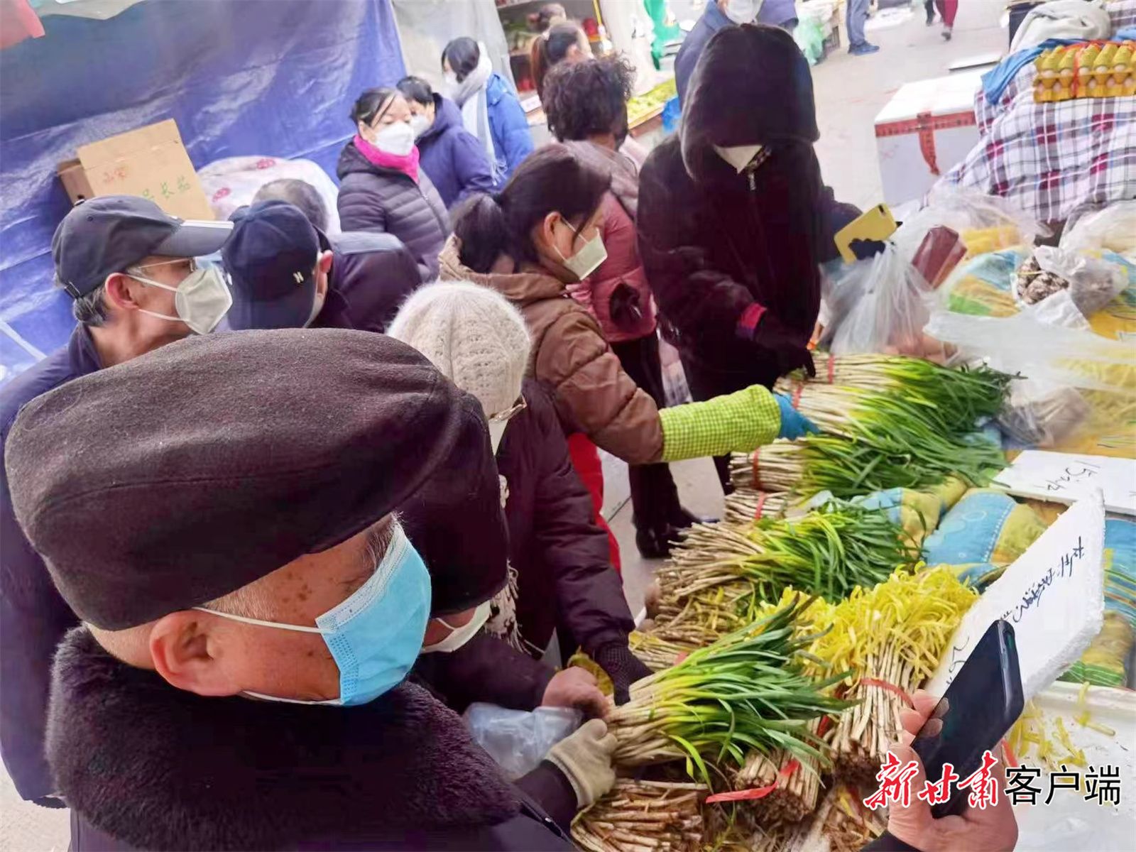 市民王辉正在挑选韭黄,他一共买了8斤。“要回北京和家人团聚,母亲叮嘱一定要买韭黄,老兰州人最爱韭黄肉馅的饺子!”