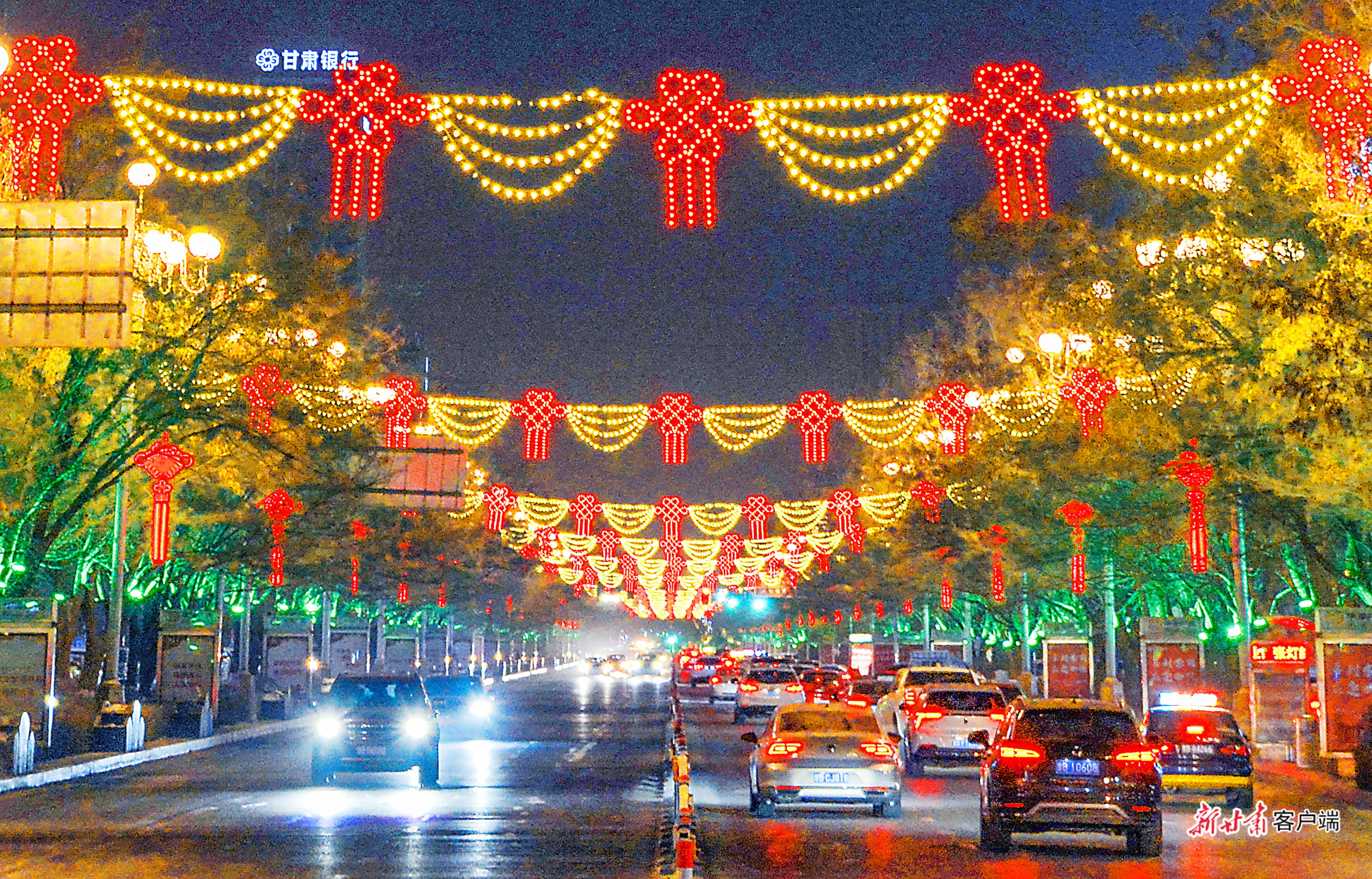 走上街头,喜气洋洋的大红灯笼随处可见,城市主要干道两旁行道树上挂满各式各样的LED灯链与中国结,将新华路、迎宾路的夜景装扮得多姿多彩,为全市人民营造出浓厚的喜庆氛围。