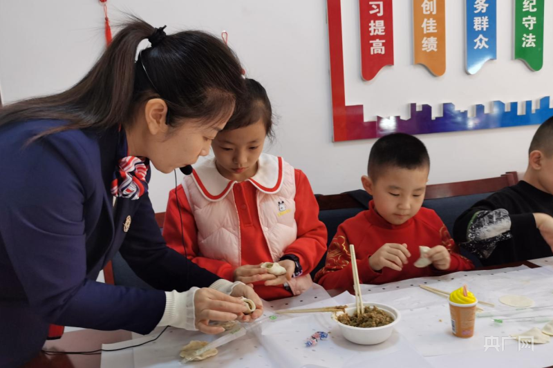 孩子们听老师讲传统习俗体验包饺子(央广网发 唐欣 摄)