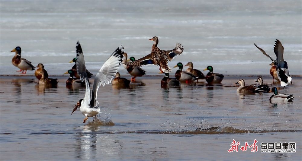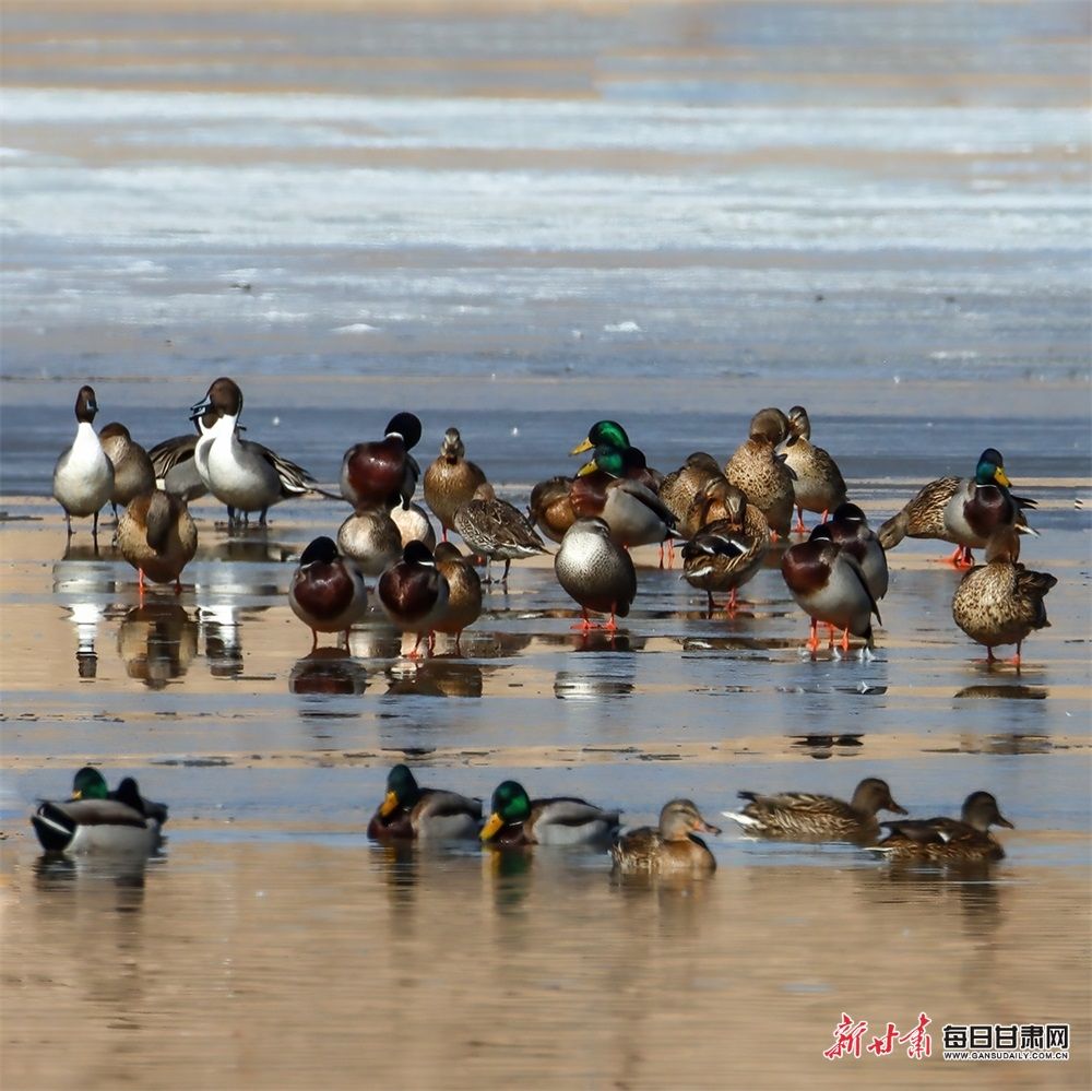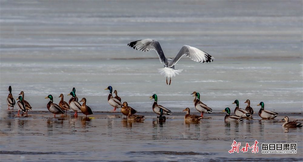 初春时节,在张掖市山丹县祁家店水库湿地,大批的候鸟如约而至,它们的羽翼划过天空,为春日的山丹县增添了一道独特而又灵动的景色。