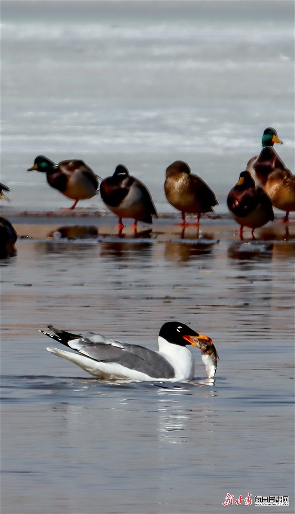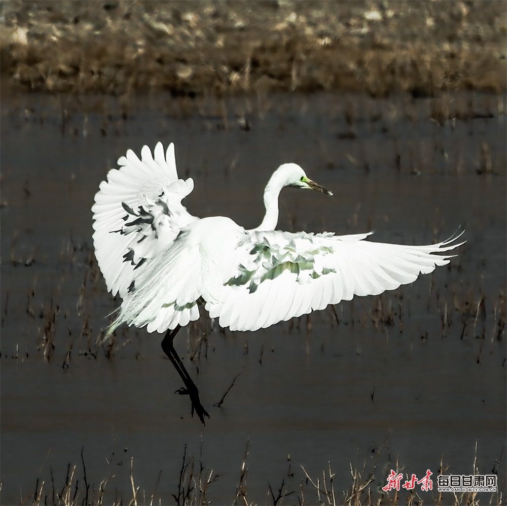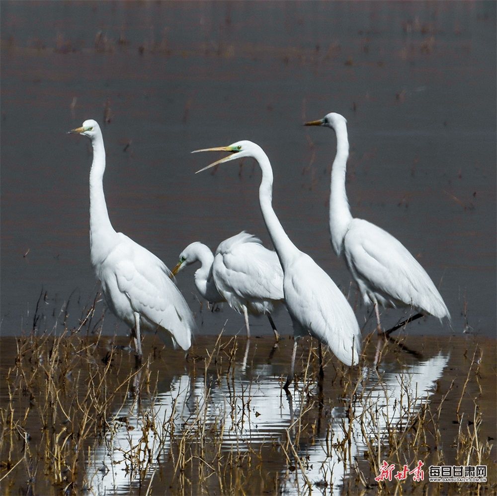 大白鹭、绿头鸭、青头潜鸭、赤麻鸭等鸟类纷至沓来,山丹祁家店水库湿地成了鸟儿的天堂、水鸟的乐园。