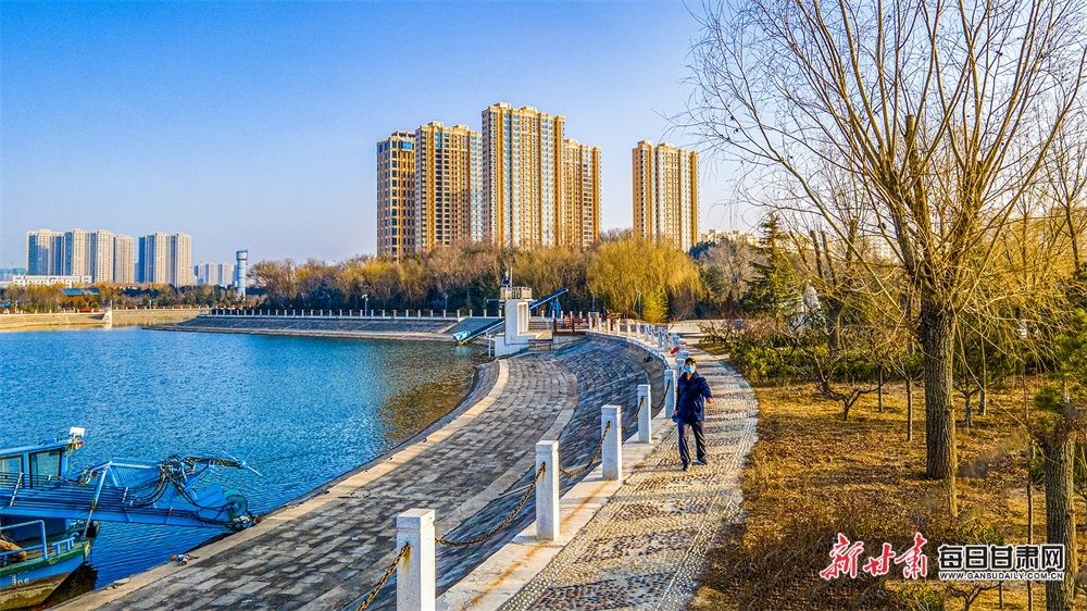 初春时节,庆阳市南湖公园内,几名游人正在河岸边休闲散步。春暖花开时节,南湖湿地公园的花草树木在和风的吹拂下,渐次开花吐绿,与碧绿汾水相映成趣,构成一幅美丽的春日画卷。