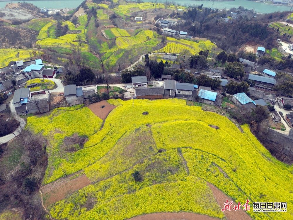连日来,陇南市文县碧口镇、范坝镇的油菜花进入盛开期,灿烂盛开的油菜花把大地染得一片金黄。