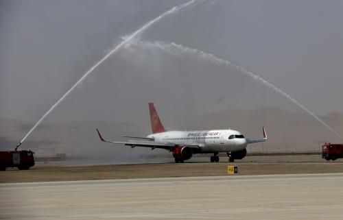 2、2023年6月22日,吉祥航空上海至敦煌直飞首航航班降落在甘肃敦煌莫高国际机场,受到民航界最高礼仪“过水门”迎接。