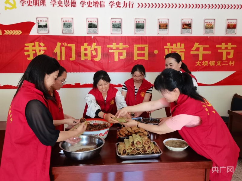大坝镇志愿者们制作的爱心粽子(央广网发 郭飞 摄)