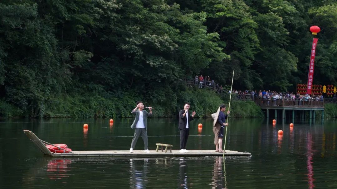 活动现场,在天鹅湖竹筏上表演的古筝、歌曲演唱等形式多样的文艺节目赢得了观众热烈掌声,将现场氛围推向高潮,引得不少观众拿出手机现场拍照录像,记录精彩瞬间。