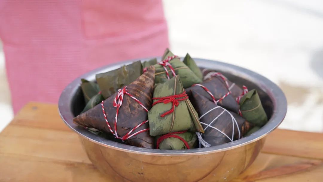 活动现场欢声笑语、气氛热烈,大家纷纷化身“手工家”,捋粽叶、填糯米、裹叶子、扎棉线,一片片清香的粽叶、一粒粒晶莹的糯米,在一双双巧手下变成了一个个诱人的粽子。