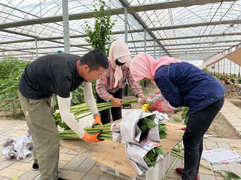 花农们正在打包鲜切花(央广网发 甘州区委宣传部 供图)