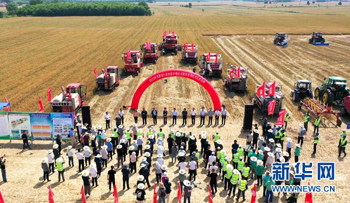 甘肃省“三夏”小麦机收开镰仪式在庆阳市宁县举行。新华网(王生元 摄)