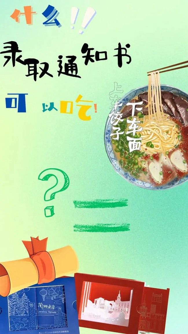 6月26日,兰州大学公布2023年录取通知书样式,除了红、蓝两个版本,还附赠了一份可以“吃”的惊喜。“上车饺子下车面”,打开录取通知书时,会出现一张牛肉面券,2023级新生可凭该券在新生入学季2023年8月20日—2023年10月7日内任选面券上的一家牛肉面馆获得兰州味蕾初体验,这是专属于2023级新生的见“面”礼。