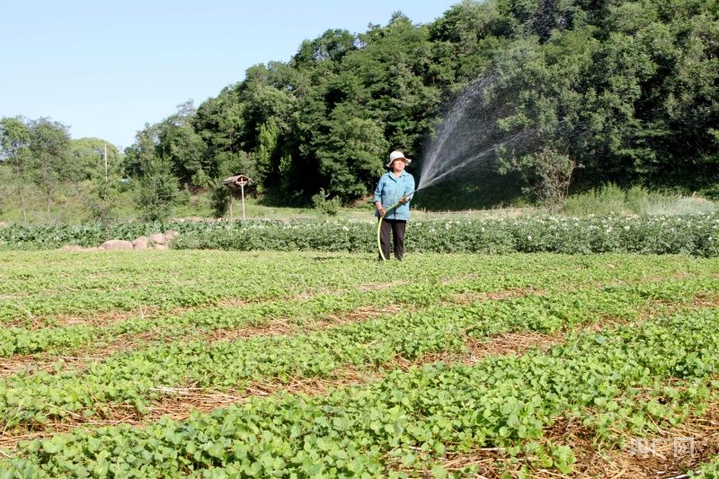 马峡镇药农正在管护药苗(央广网发 张小兵 摄)