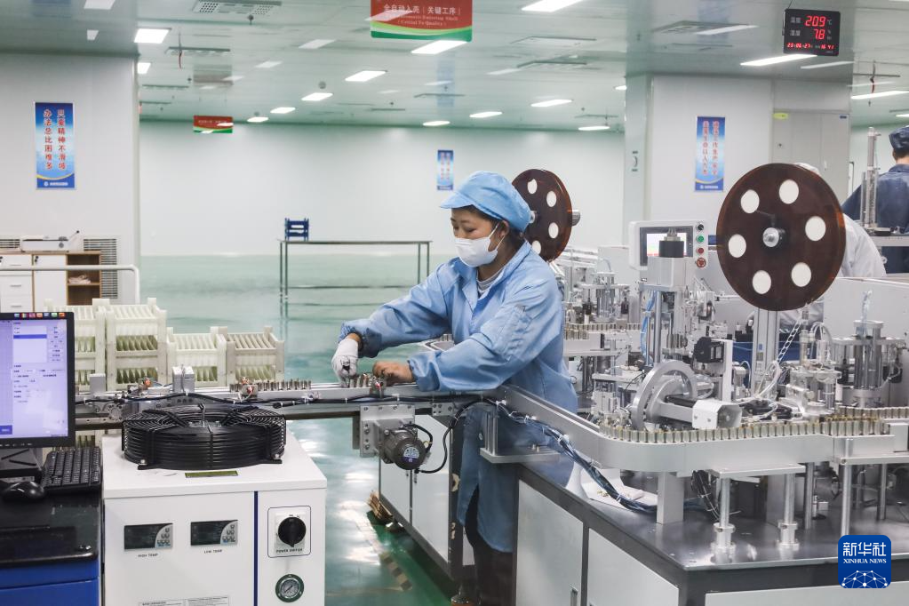 6月27日,在位于金昌经济技术开发区的甘肃金宏翔新能源有限公司,工人在18650电池生产线上作业。新华社记者 马希平 摄