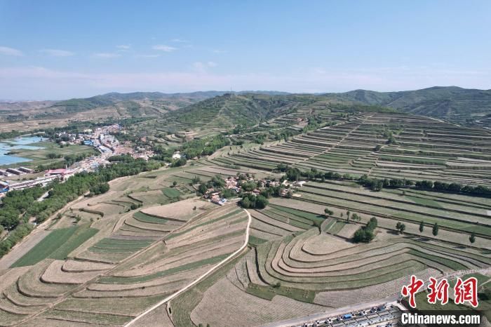 图为航拍视角下安定区黄土高原上层层错落的梯田。高莹 摄