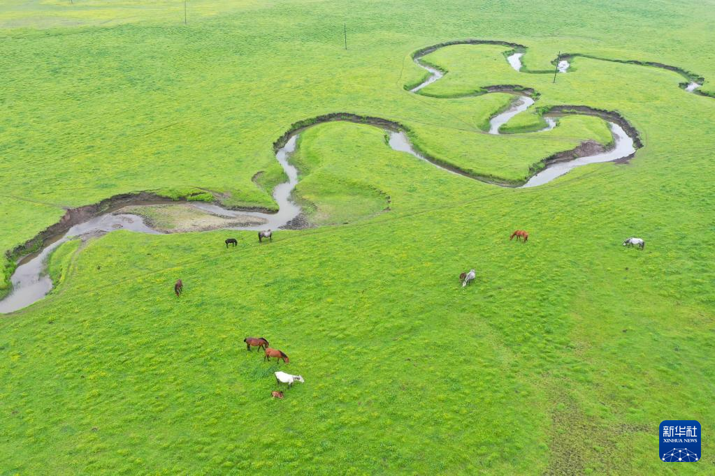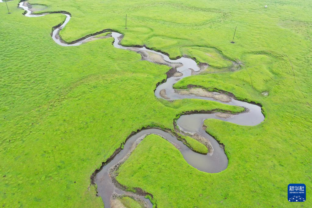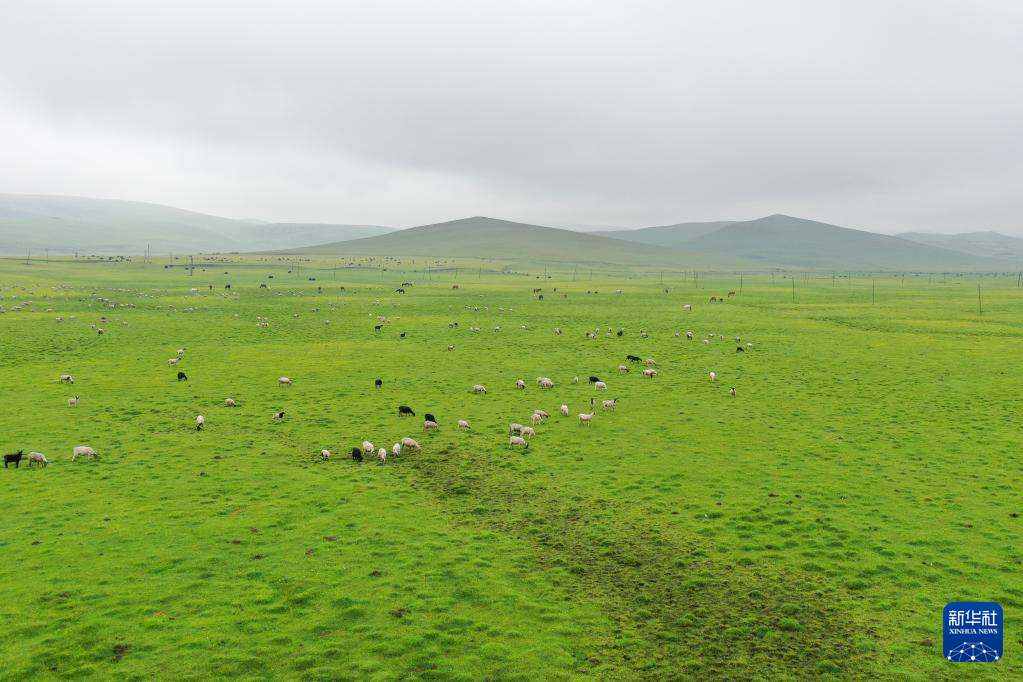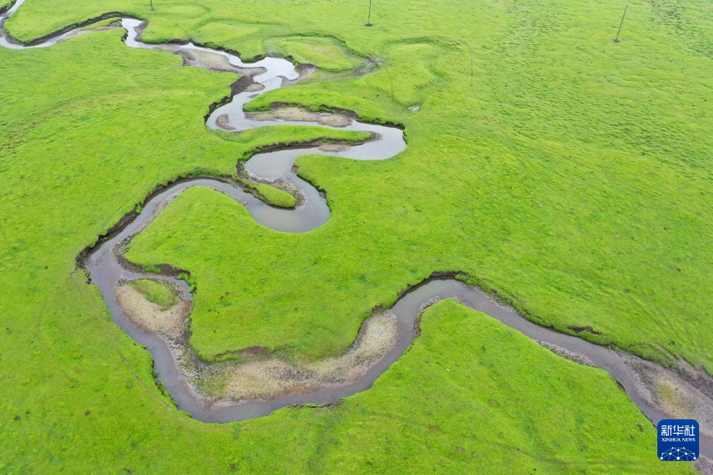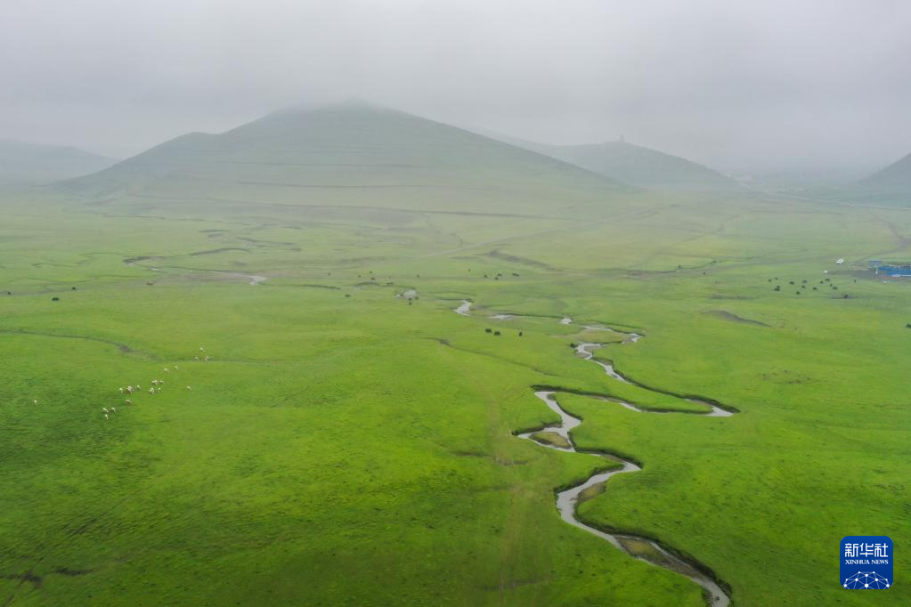 这是7月1日拍摄的狼渡滩草原风光(无人机照片)。新华社记者 郎兵兵 摄