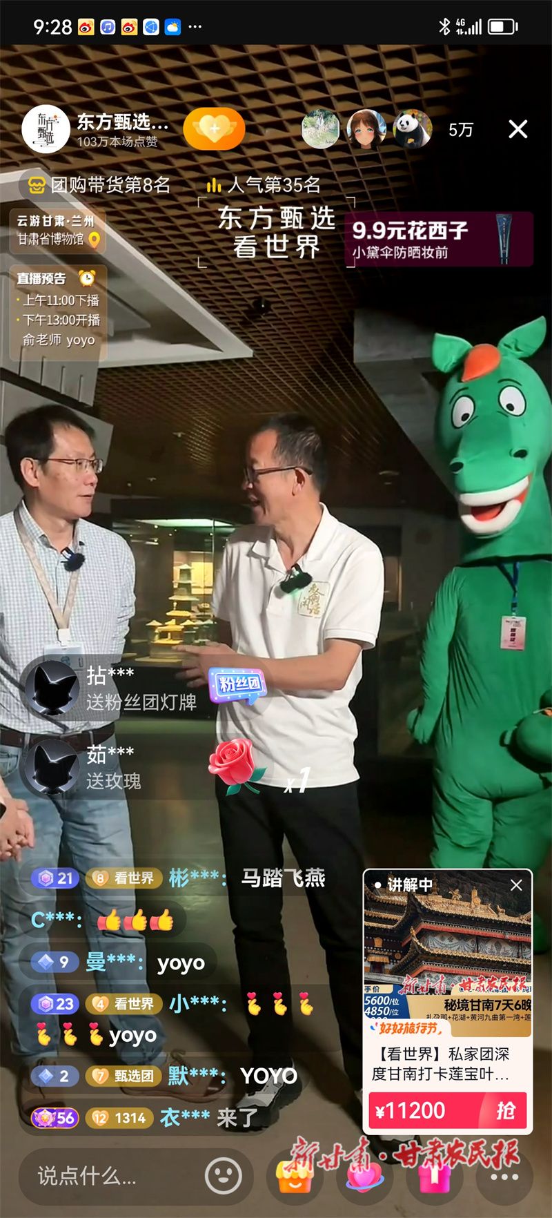 7月5日9点,东方甄选甘肃专场直播活动正式开启,第一站选取了甘肃省博物馆,带领全网观众领略甘肃美景、体悟人文荟萃。