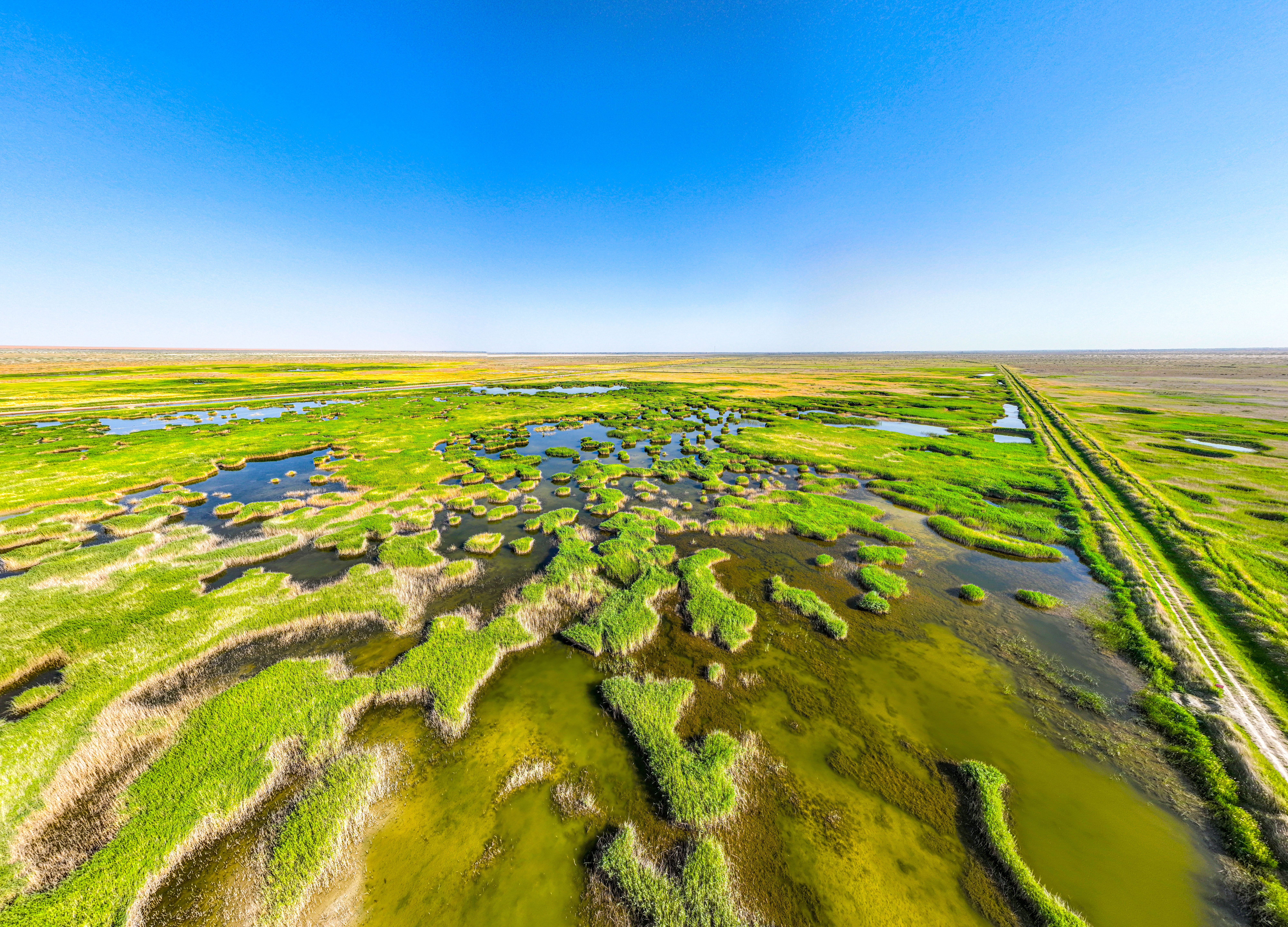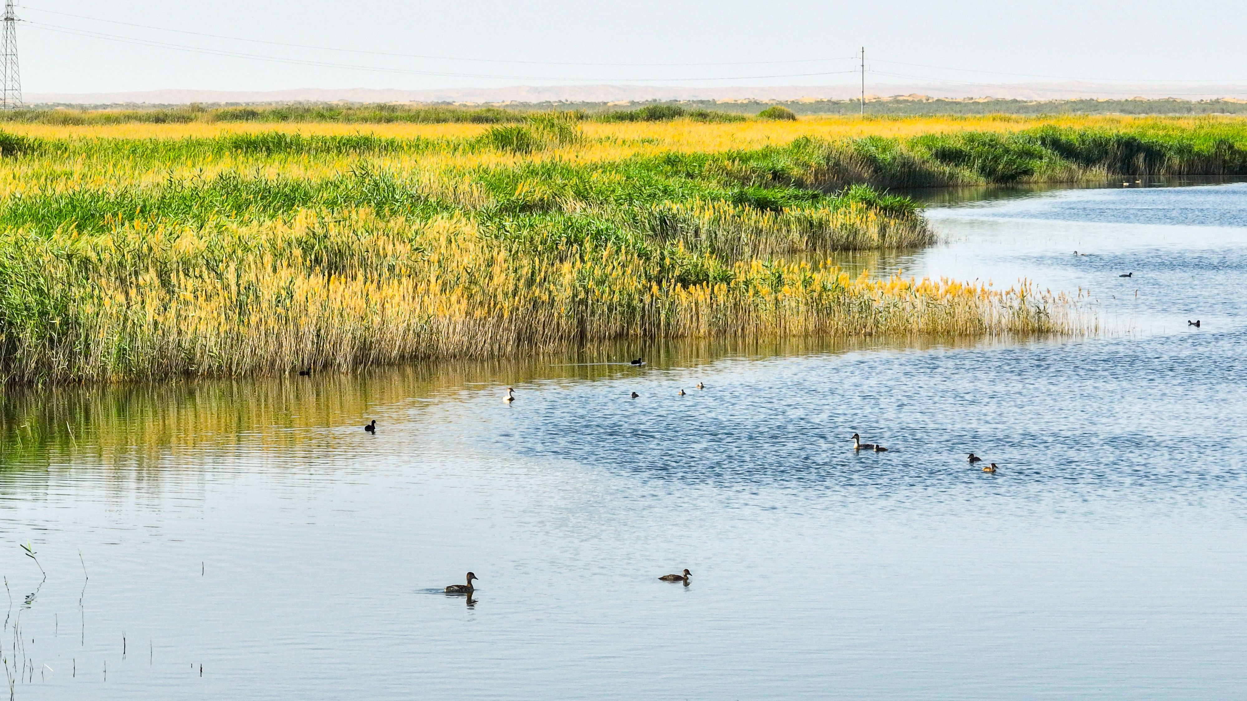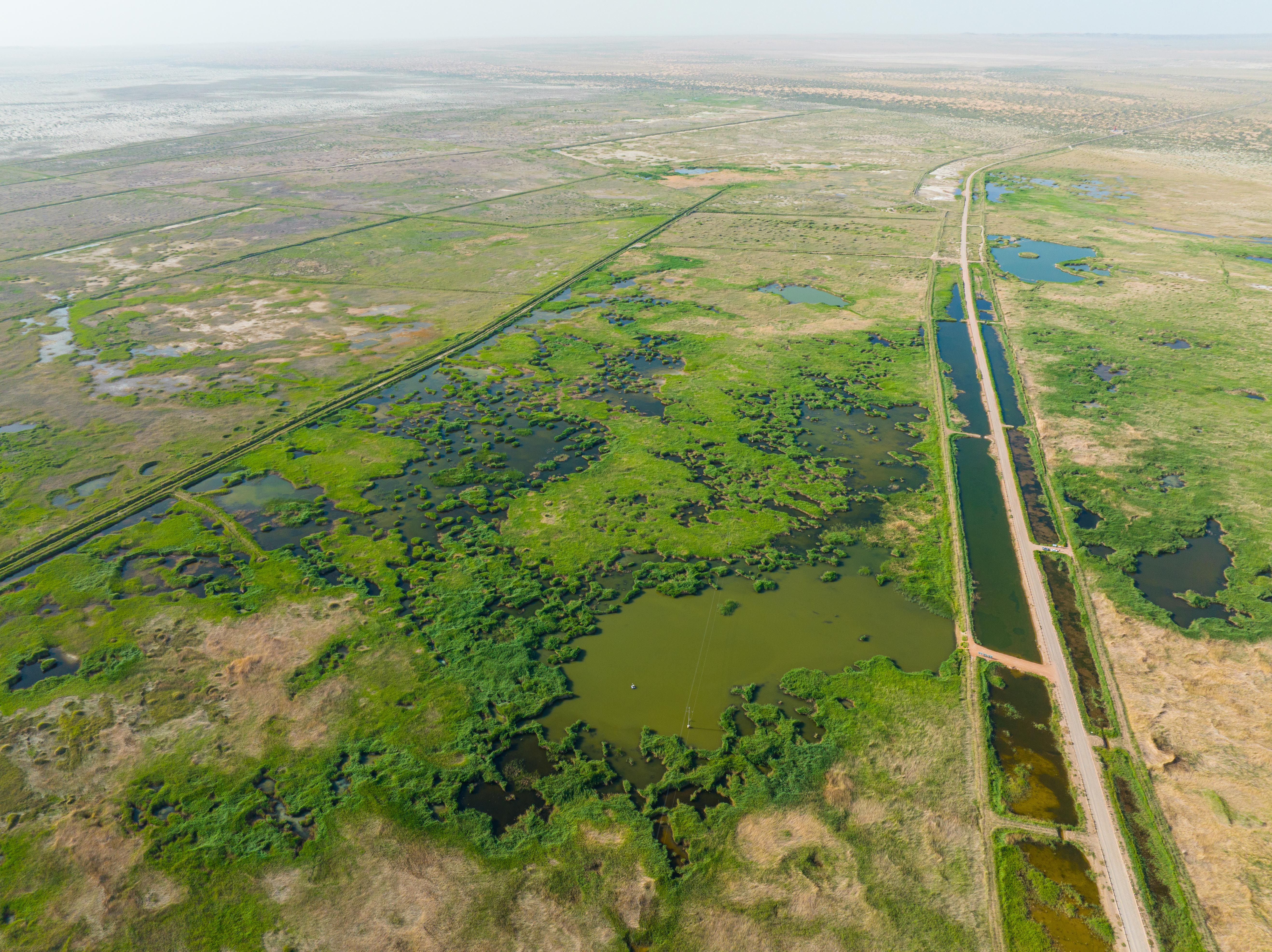 青土湖是民勤绿洲北部最大的风沙口,风沙线长达13公里,流沙面积12万亩,腾格里和巴丹吉林沙漠在这里呈合围之势。为了阻止两大沙漠合拢,促进区域生态修复,从2000年开始,民勤县结合当地实际,统一规划,采取压沙造林、滩地造林、移民搬迁、退耕还林、封禁保护等措施综合治理。如今,这里已完成压沙造林14.3万亩,滩地造林2.8万亩,形成旱区湿地106平方公里,成为候鸟迁徙途中的“水上乐园”。