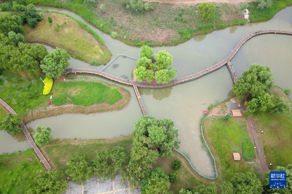 盛夏时节,位于甘肃省兰州市安宁区的银滩湿地公园绿意盎然、空气清新。