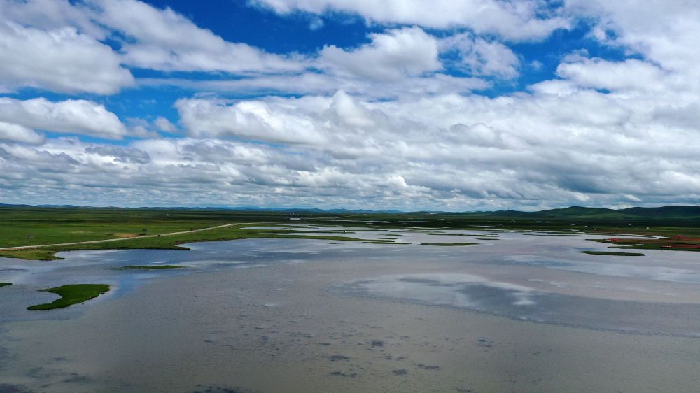 ↑这是玛曲县阿万仓湿地景色(7月6日摄,无人机照片)。