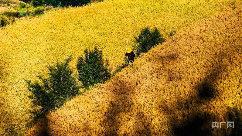 庄浪县小麦渐入成熟期即将开镰收割(央广网发 张沛杰 摄)