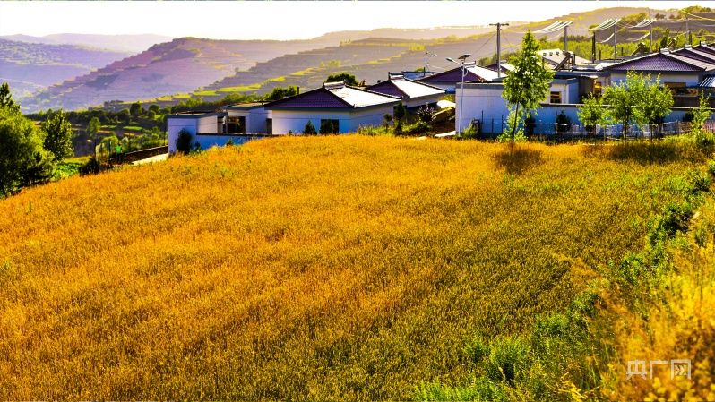 庄浪县柳梁镇周蒲村的民居与金黄色的麦田交相辉映(央广网发 张沛杰 摄)