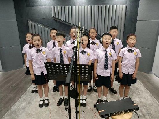 文县东坝童声合唱团的孩子们在甘肃广播电视总台青少频道录节目。