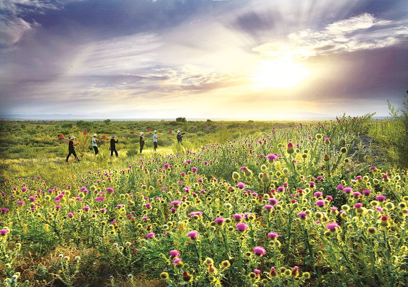 肉苁蓉被称为“沙漠人参”。2008年,原本在北京中关村工作的贾其煜回到家乡甘肃省临泽县平川镇,承包了146公顷沙漠戈壁,办起“苁蓉林场”。贾其煜不仅摸索出梭梭嫁接肉苁蓉的门道,还研发出苁蓉切片、苁蓉茶等产品,获得了可观的效益。