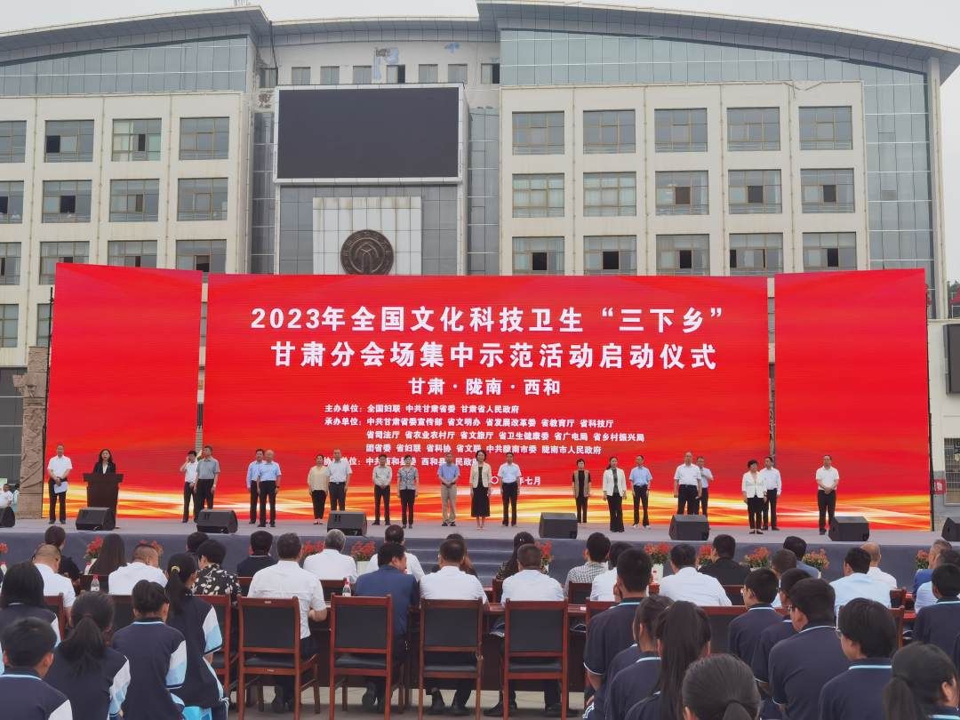 11日上午,2023年全国文化科技卫生“三下乡”甘肃分会场集中示范活动在陇南市西和县举行。全国妇联和甘肃省委宣传部等15家省直部门联合开展了理论宣讲、文化服务、健康义诊、普法宣传、科技科普、政策咨询等系列活动。