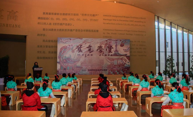 近年来,敦煌市借助敦煌文化旅游品牌,大力开发研学旅游体验项目,让游客们能够近距离深度感受和体验敦煌博大精深的传统文化,带给各地游客饱含丝路文化的“敦煌记忆”。敦煌研究院依托敦煌石窟资源和学术资源,打造“莫高学堂”研学品牌,结合敦煌壁画的结构、岩彩、图案等内容和元素,研发了“莫高梦·泥胚典藏”“遇见敦煌·色彩”等10余个独具特色的研学课程,传承弘扬敦煌文化。莫高学堂自2019年创办以来,累计有5万余人次参加敦煌文化研学体验。