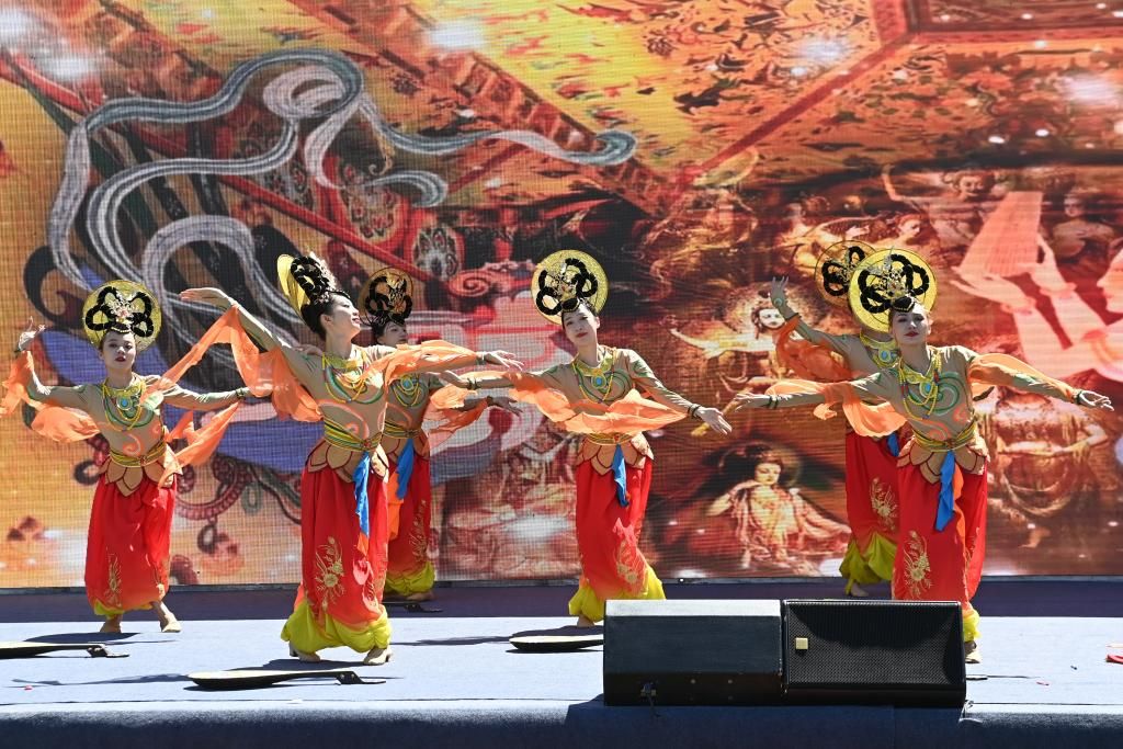7月15日,在第十届兰州百合文化旅游季活动开幕式上,演员表演舞蹈。新华社记者 范培珅 摄