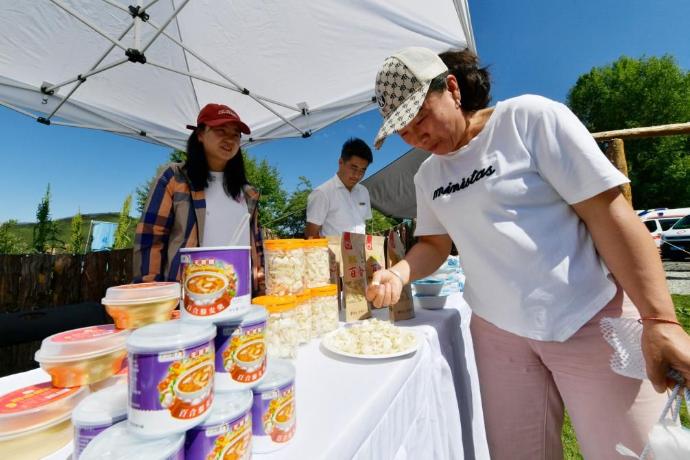 7月15日,在第十届兰州百合文化旅游季活动开幕式上,一名女士选购百合产品。新华社记者 范培珅 摄