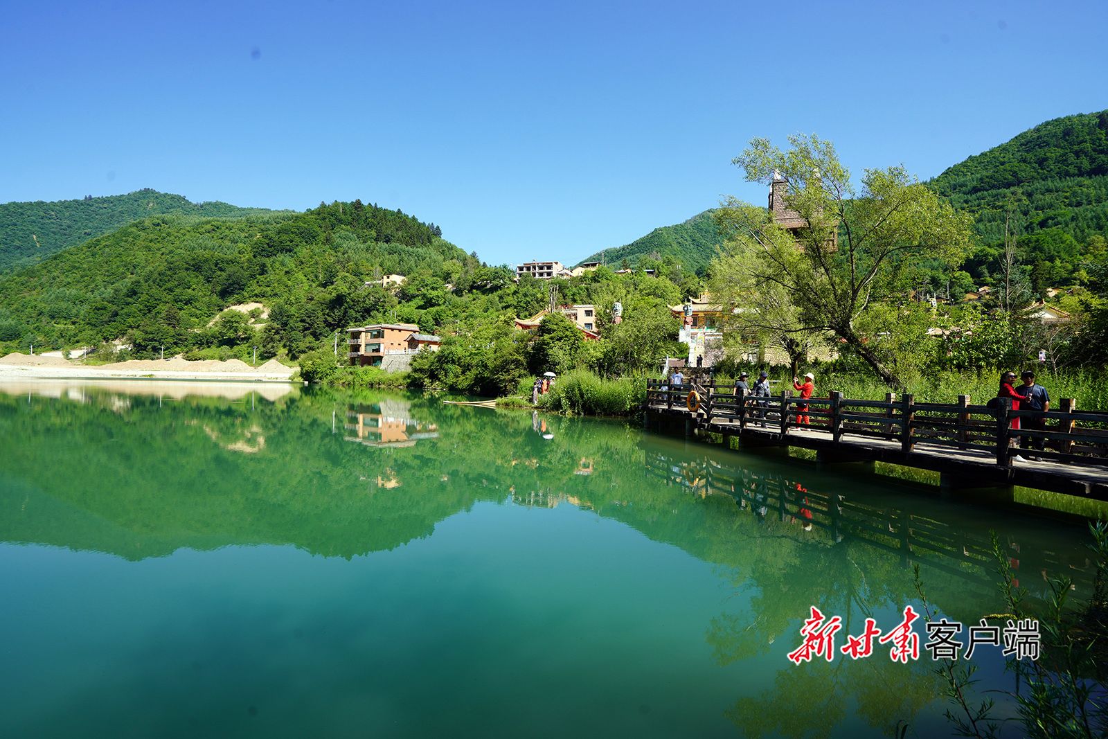7月17日游客在陇南市宕昌县官鹅沟鹿仁民俗文化村游览。鹿仁村坐落在官鹅沟国家森林公园内,自然风光秀美,藏羌风情独特。近年来,鹿仁村大力发展以旅游为主的富民产业,成为远近闻名的乡村旅游示范村。