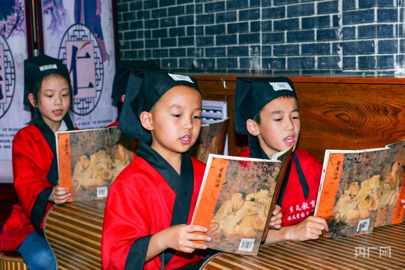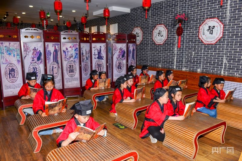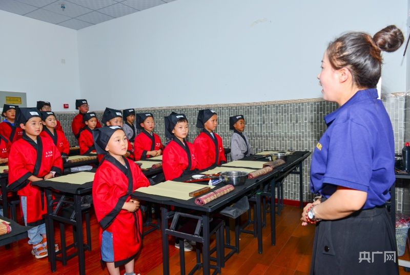 近日,在甘肃省定西市通渭县一家学生假日活动中心,迎来暑假的小学生们一起参加国学趣味活动,享受属于自己的快乐假期。诵诗文、听故事、学礼仪、知国学……通过趣味活动,让孩子们接受传统礼仪行为养成教育,身临其境感受中国传统文化的魅力。
