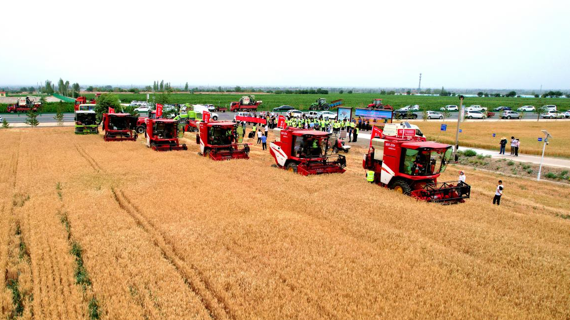 在凉州区内,村民种植的33万多亩小麦开始收割。田野中麦浪滚滚,金黄一片。