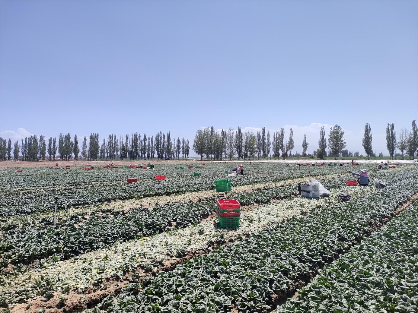 菜农们正在凉州区金河镇富泉村粤港澳大湾区蔬菜供应基地内劳作