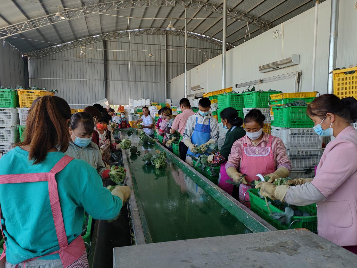 在凉州区金河镇富泉村粤港澳大湾区蔬菜供应基地内,菜农们正忙着起垄、播种、喷灌、采摘、拣选、过磅、入库、装车,经过严格筛选的蔬菜将运往粤港澳大湾区和上海市场。