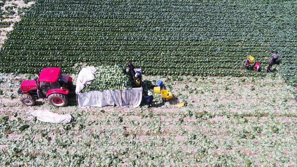 目前,位于黄土高原的甘肃省定西市种植的高原夏菜正值采收旺季,菜农趁着晴好天气采收、包装、外运各种蔬菜。