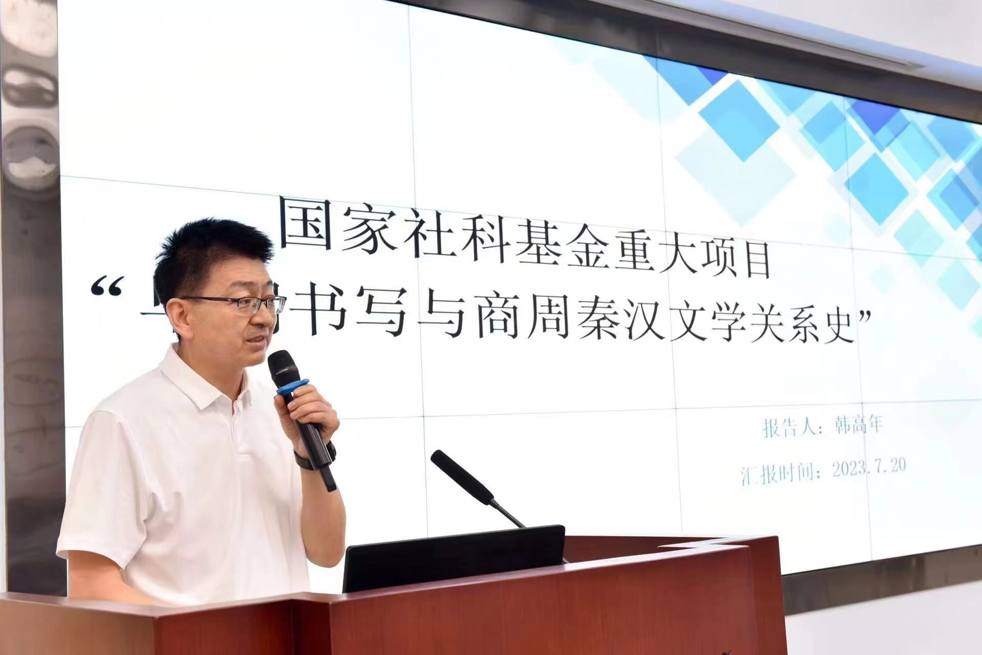 7月20日上午,国家社科基金重大项目“早期书写与商周秦汉文学关系史”开题论证会暨学术研讨会在西北师范大学召开。来自复旦大学、北京外国语大学、首都师范大学、安徽大学、西华师范大学、甘肃简牍博物馆、北方民族大学、湘潭大学、兰州财经大学、甘肃中医药大学、西北师范大学等国内高校和科研单位的50余位专家学者参加会议。