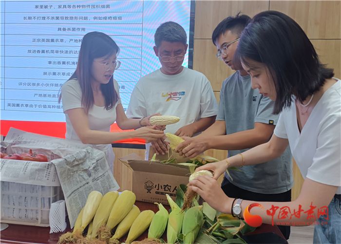 7月21日,在“I@甘肃 2023网络富民博览会”网信新农人行动兰州会场上,皋兰县学员张宗程带来自家大棚种植的玉米。这样玉米结合了糯玉米的粘性,水果玉米的甜度,成为学员们学习带货的热门农特产品。